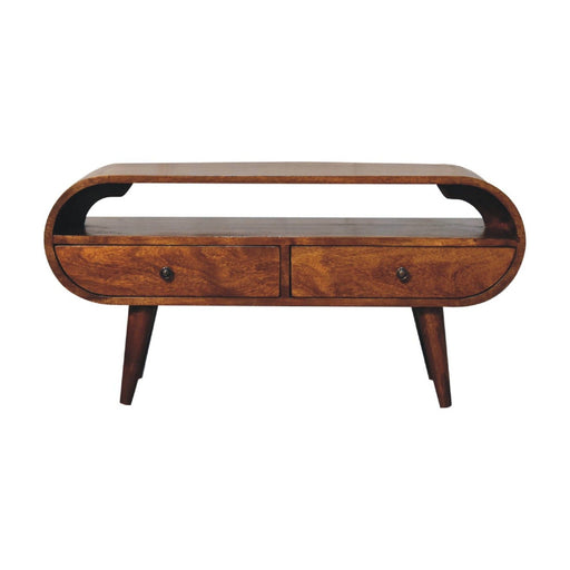 Artisan Furniture Solid Wood Curved Media Unit - Our solid timber media unit is expertly constructed from 100% solid mango wood in a lovely finish....