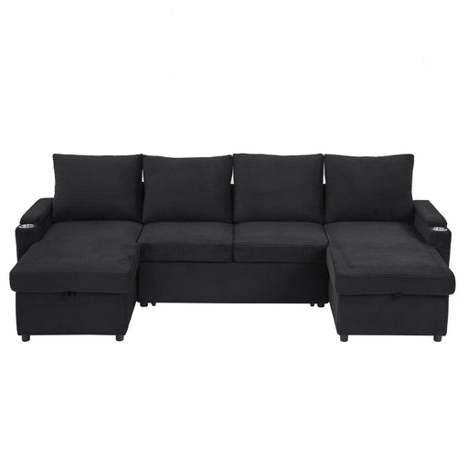 View full detailsU Shaped Sectional Sofa Bed With Storage Chaise Lounges, USB Ports, And Cup Holders