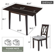 MULTIFUNCTIONAL: The foldable dining table's tabletop size ranges from 27.9” x 29.5” to 45.67” x 29.5”, so you can extend it to accommodate more people when needed. When not in use, fold the dining leaves on both sides and the dining chairs can be pushed under the dining table, thus saving more space and adding more practicality to your living space!