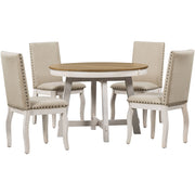 Farmhouse Dining Table Set Wood Round Extendable Dining Table And Upholstered Dining Chairs
