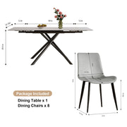 Retractable Dining Table Set With Carbon Steel Legs, Includes 8 Chairs - White