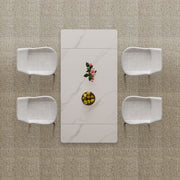 Retractable Dining Table Set With Carbon Steel Legs, Rectangular, Table And 4 Chairs - White
