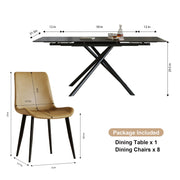 Retractable Dining Table Set With Carbon Steel Legs And Cross Leg Structure, Table And 8 Chairs - Black