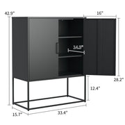 Heavy Duty Metal Buffet Sideboard Modern Steel Storage Cabinet With 2 Shelves, Free Standing Accent Cabinet With Magnetic Doors For Bedroom, Kitchen, And Home Office, Anti-Tip Design - Black