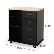 Yohaan - Contemporary Kitchen Cart With Wheels - Black