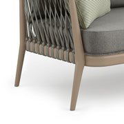 - Features a unique contemporary design, The curved back and arms are wrapped with highly durable woven rope in an intricate pattern