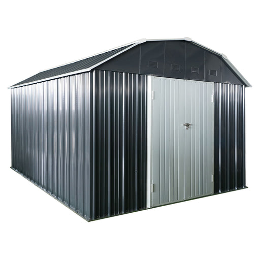 Ver todos los detalles10 Ft X 12 Ft Outdoor Metal Storage Shed With Arch Roof With Lockable Doors For Backyard Garden Patio Lawn - Black
