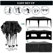 10'X20' Folding Canopy With 6 Removable Sidewalls Outdoor Event Shelter UPF 50+ Gazebo Portable Tents For Parties Beach Camping Wedding Ez Pop Up Canopy - Black