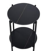 2-Layer End Table With Whole Marble Tabletop, Round Coffee Table With Metal Frame For Bedroom Living Room Office - Black