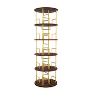 5 Tier 360 Rotating Bookshelf, Display Round Floor Standing Swivel Bookcase For Bedroom - Golden