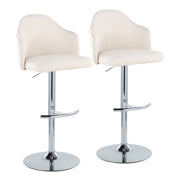 Ahoy - Contemporary Adjustable Barstool With Swivel With Rounded T Footrest (Set of 2) - Chrome / Cream