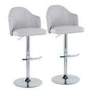 Ahoy - Contemporary Adjustable Barstool With Swivel With Rounded T Footrest (Set of 2) - Chrome / Light Gray