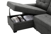 Ashlyn - Reversible Sleeper Sectional Sofa With Storage Chaise, USB Charging Ports nd Pocket - Dark Gray