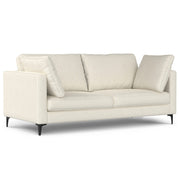 • The generously sized sofa for 3 features 2 wide seat cushions with high-density foam cores and feather/fiber toppers wrapped in high-quality polyester, plus 2 thick back cushions 2 large throw pillows filled with feathers and fiber for a soft, comfortable feel.