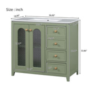 Bathroom Vanity With Two Soft Close Doors, Adjustable Shelves And Three Drawers - Green