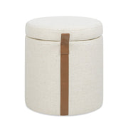 Brandy - Round Upholstered Storage Ottoman With Leather Accent - Flax White