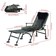 Camping Lounge Chair With Detachable Footrest, Portable Folding Reclining Camping Chair With Adjustable Backrest For Indoor And Outdoor Camping Beach Hiking Fishing - Green / Black