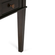 - Features 1 functional drawer with metal drawer glides and copper bronze rounded decorative handles