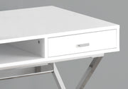 - Contemporary Design: Featuring a glossy finish and a contemporary X-design chrome metal base, this desk ensures both style and sturdiness.