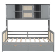 Full Size Wooden Daybed With 2 Drawers, And All In One Cabinet And Shelf - Gray