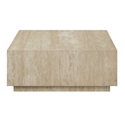 • Timeless Elegance: This square coffee and end table features a natural travertine top, showcasing unique veining and texture that offers a luxurious and elegant look.