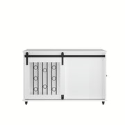 Dog Crate With Sliding Barn Door And Side Access, Lockable Wheels For Small To Medium Dogs - White