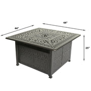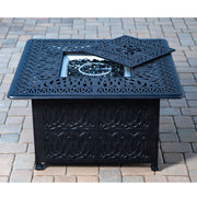 Elegant Cast Aluminum Square Fire Table With Fire Glass And Cover - Antique Bronze