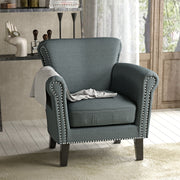 Elegant Upholstered Club Chair With Nailhead Trim - Blue / Gray