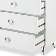 - Refined Aesthetic: The drawers are accented with single ring pull hardware in silver, enhancing the chest's refined aesthetic while maintaining practicality and easy access.