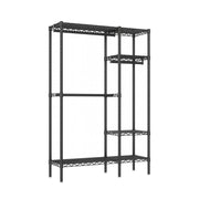 Freestanding Clothes Rack, With 6 Adjustable Wire Shelves And 3 Garment Rails - Black