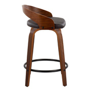 Grotto - Mid-Century Modern Fixed Height Counter Stool & Swivel With Round Footrest (Set of 2) - Walnut / Brown