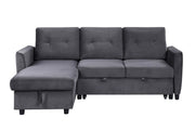 - The Hudson two-piece sectional couch is easy to assemble and can be arranged to meet your needs with its reversible chaise. The pull-out bed saves space and is easily ready for your guests to use. Its velvet upholstery and foam filled seats provide comfort, while its storage chaise provides the perfect place to put away blankets and pillows. The Hudson has functionality for your small space living in style!