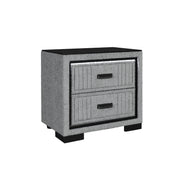 Isaiah - Nightstand With Upholstered Frame, LED Light, Block Feet, Spacious Storage - Gray