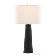 • Intricately Grooved Base: Featuring a carefully crafted grooved base, this lamp harmonizes beautifully with the natural linen drum shade, providing a warm and inviting ambiance.