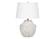 - Modern Design: Features a classic urn-shaped base with a cream concrete textured finish and an ivory linen tapered drum shade.