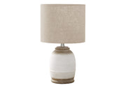 • Elegant Design: Features a two-toned light brown and cream resin base with a linen-blend beige fabric shade, adding contemporary elegance to any room.