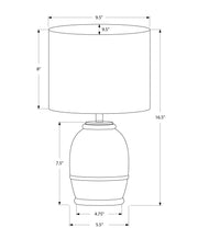 • Dimensions: Measures 9.5 in. L x 9.5 in. W x 16.5 in. H, with a base of 5.5 in. L x 5.5 in. W x 7.5 in. H and a beige shade of 9.5 in. L x 9.5 in. W x 8 in. H.