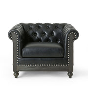 - Chesterfield Style Inspiration: Designed with the iconic Chesterfield style in mind, our club chair embodies timeless elegance, featuring smooth upholstery, deep button tufting, nailhead accents, scrolled tuxedo arms, and turned legs for a classic aesthet
