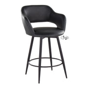 Margarite - Contemporary Fixed Height Counter Stool With Swivel With Round Footrest (Set of 2) - Matte Black / Cream