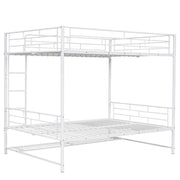 Full Over Full Bunk Bed With Shelf And Guardrails - White