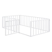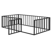 Queen Size Floor Bed Frame With Fence And Door - Black