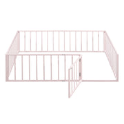 Queen Size Floor Bed Frame With Fence And Door - Pink