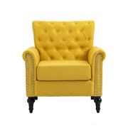 Mid-Century Modern Accent Chair, Linen Armchair With Tufted Back / Wood Legs, Upholstered Lounge Arm Chair Single Sofa For Living Room Bedroom - Yellow