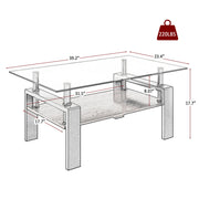 Modern Rectangular Coffee Table With Tempered Glass Top