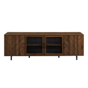 Modern Scandinavian 4 Door Herringbone 70" TV Stand For TVs Up To 80" - Dark Walnut
