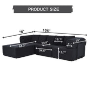 Modular L-Shaped Sectional Sofa With Deep Seat, Movable Chaise & 5 Pillows - Black