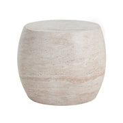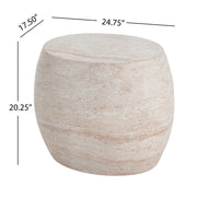 Outdoor / Indoor Lightweight Concrete Side Table, Oval Travertine Finish Accent Table - Beige