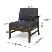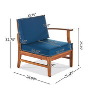 - Low Maintenance: Designed to withstand most weather conditions, this armchair requires minimal upkeep. To extend its lifespan, it's recommended to cover or store the cushions when not in use and apply teak oil as needed to maintain its appearance.