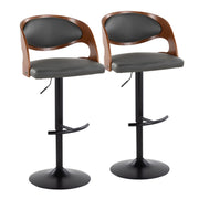 Pino - Mid-Century Modern Adjustable Barstool With Swivel With Rounded T Footrest (Set of 2) - Black / Walnut / Gray