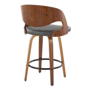 Pino - Mid-Century Modern Fixed Height Barstool With Swivel With Round Footrest (Set of 2) - Walnut / Gray